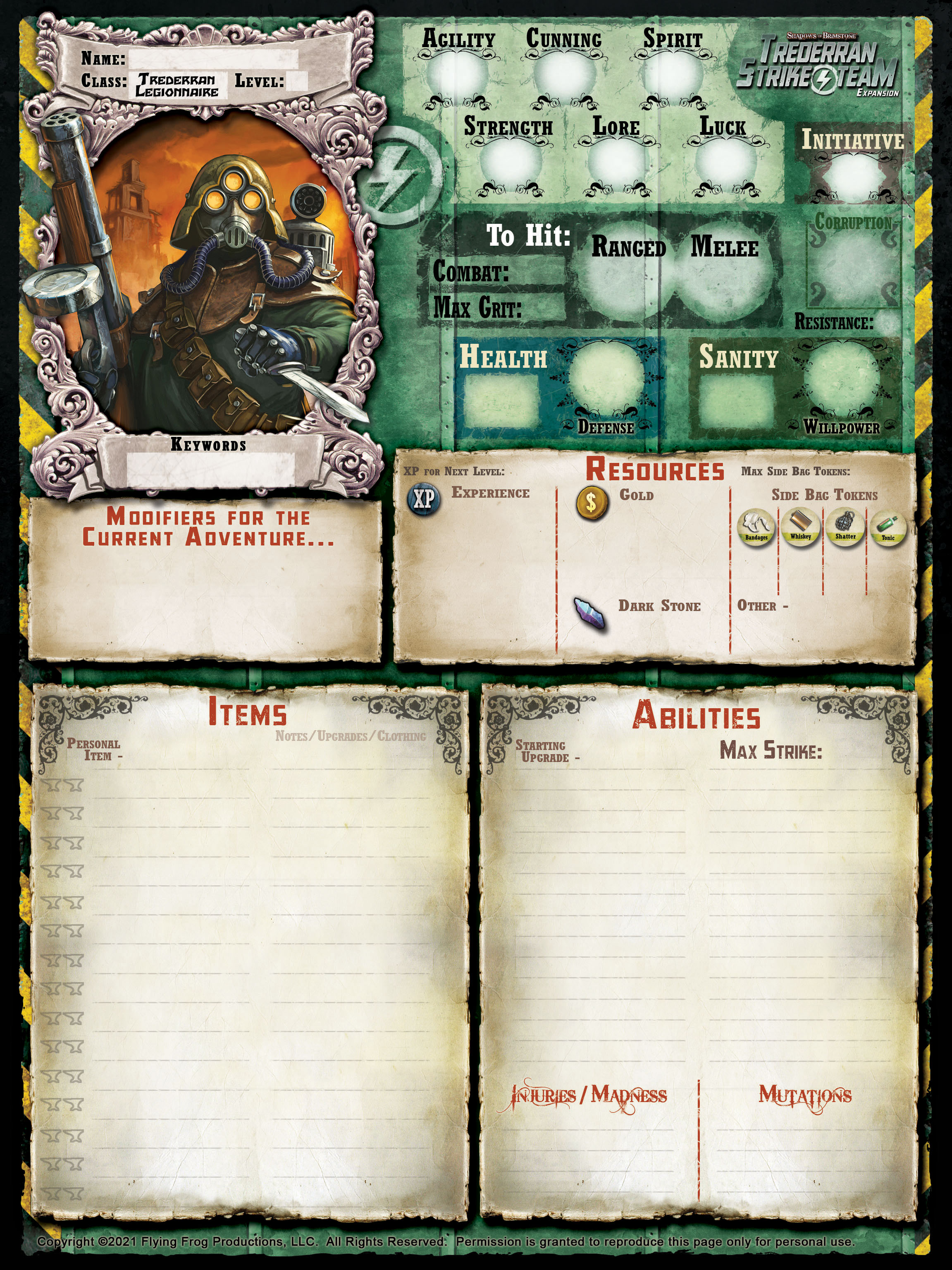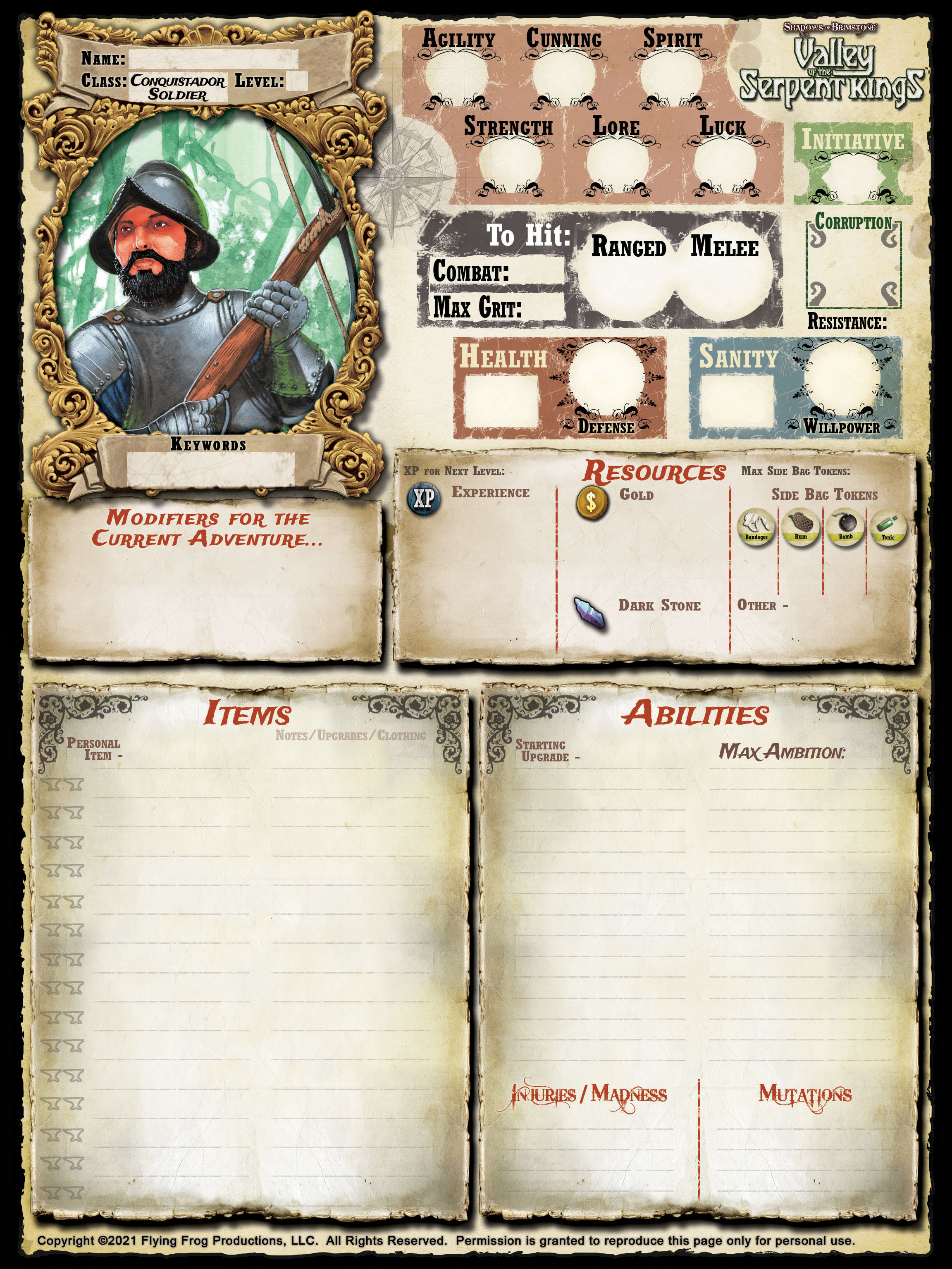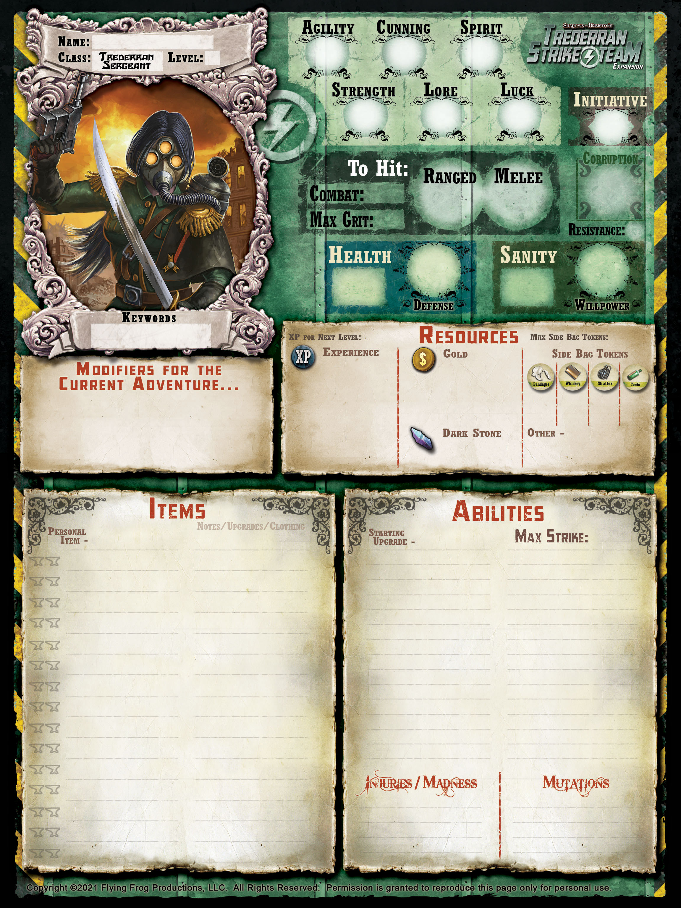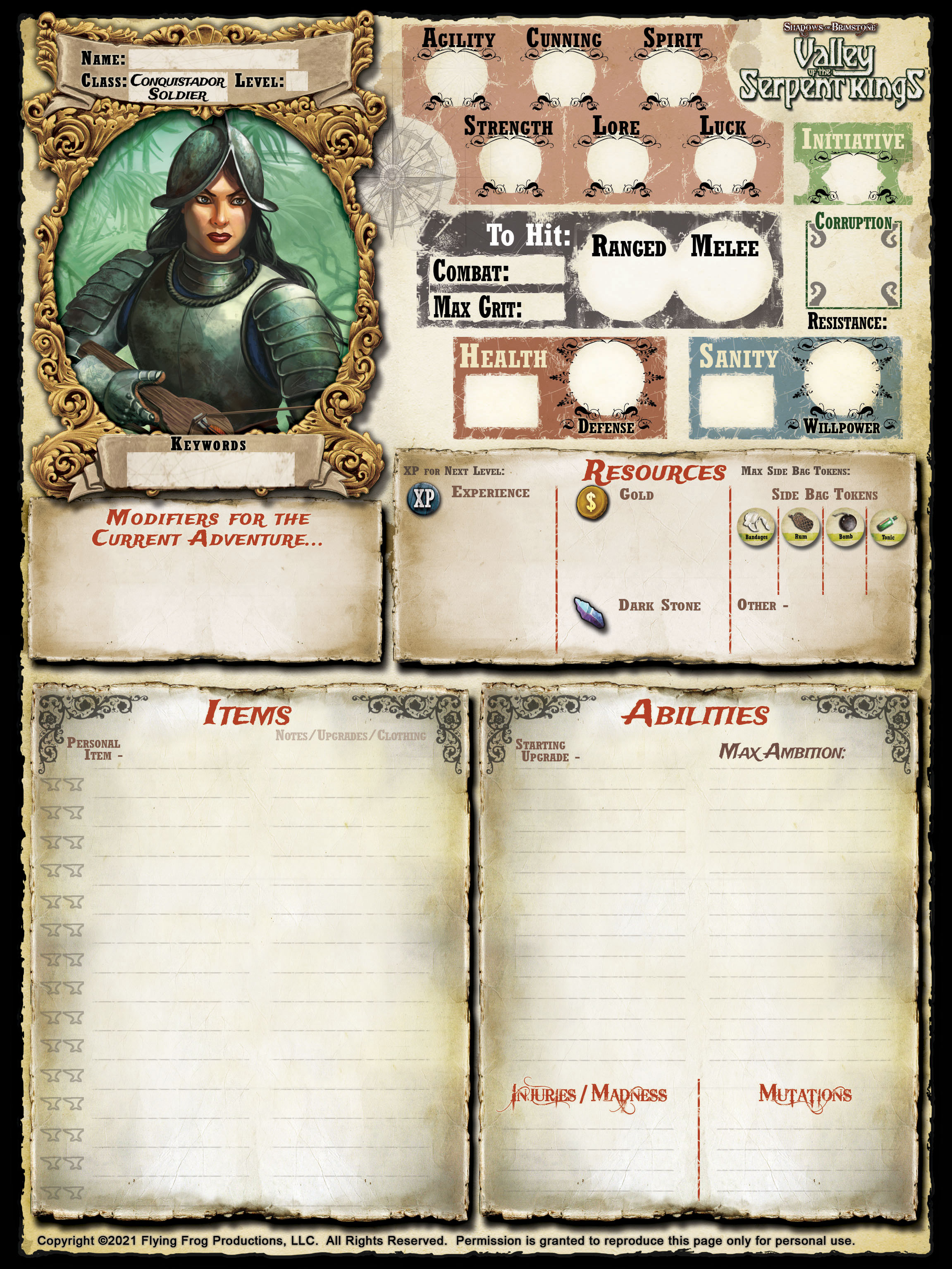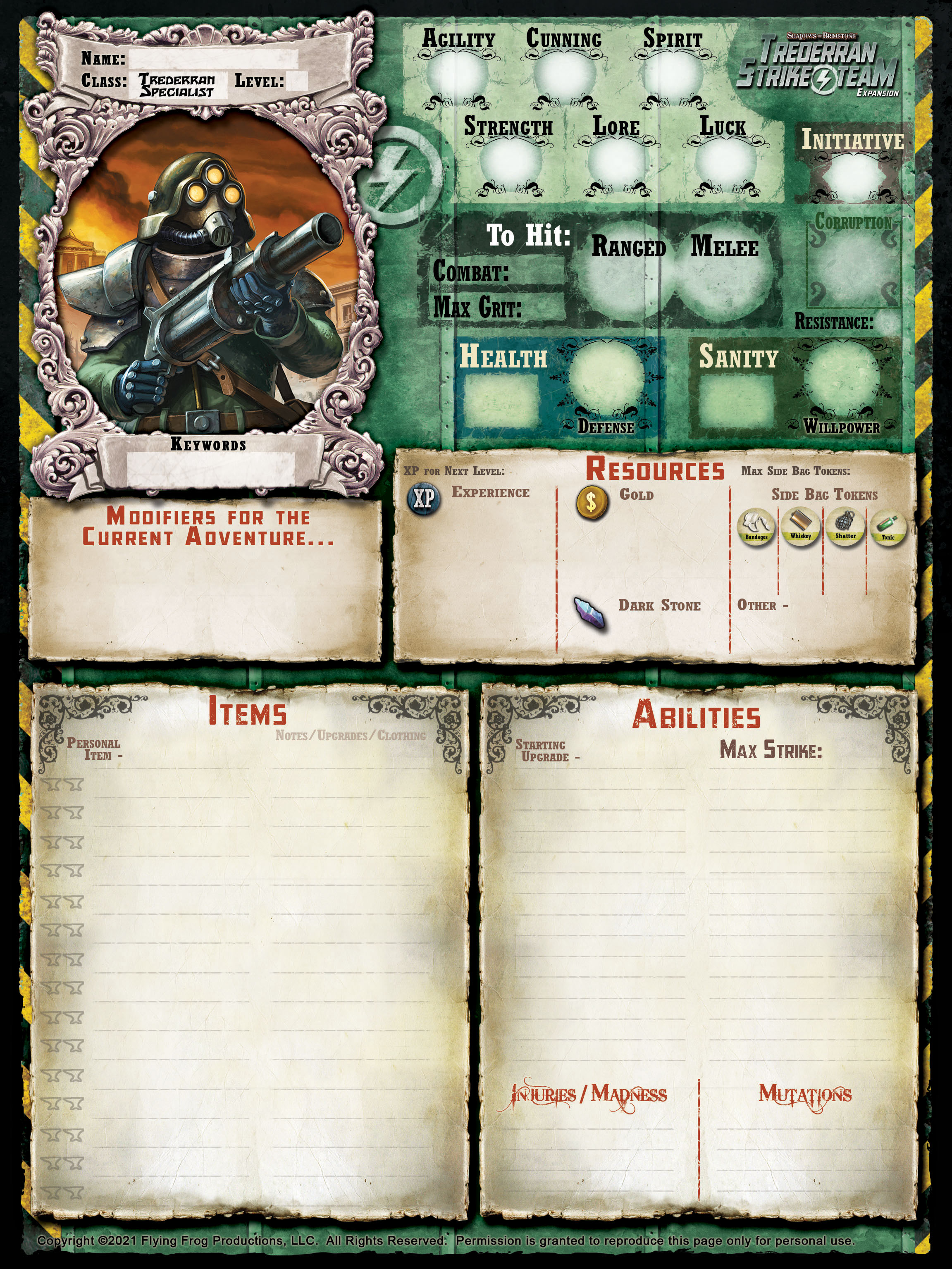 In this area, we provide various resources for players, such as Character Sheets, FAQ, and Assembly Guides.