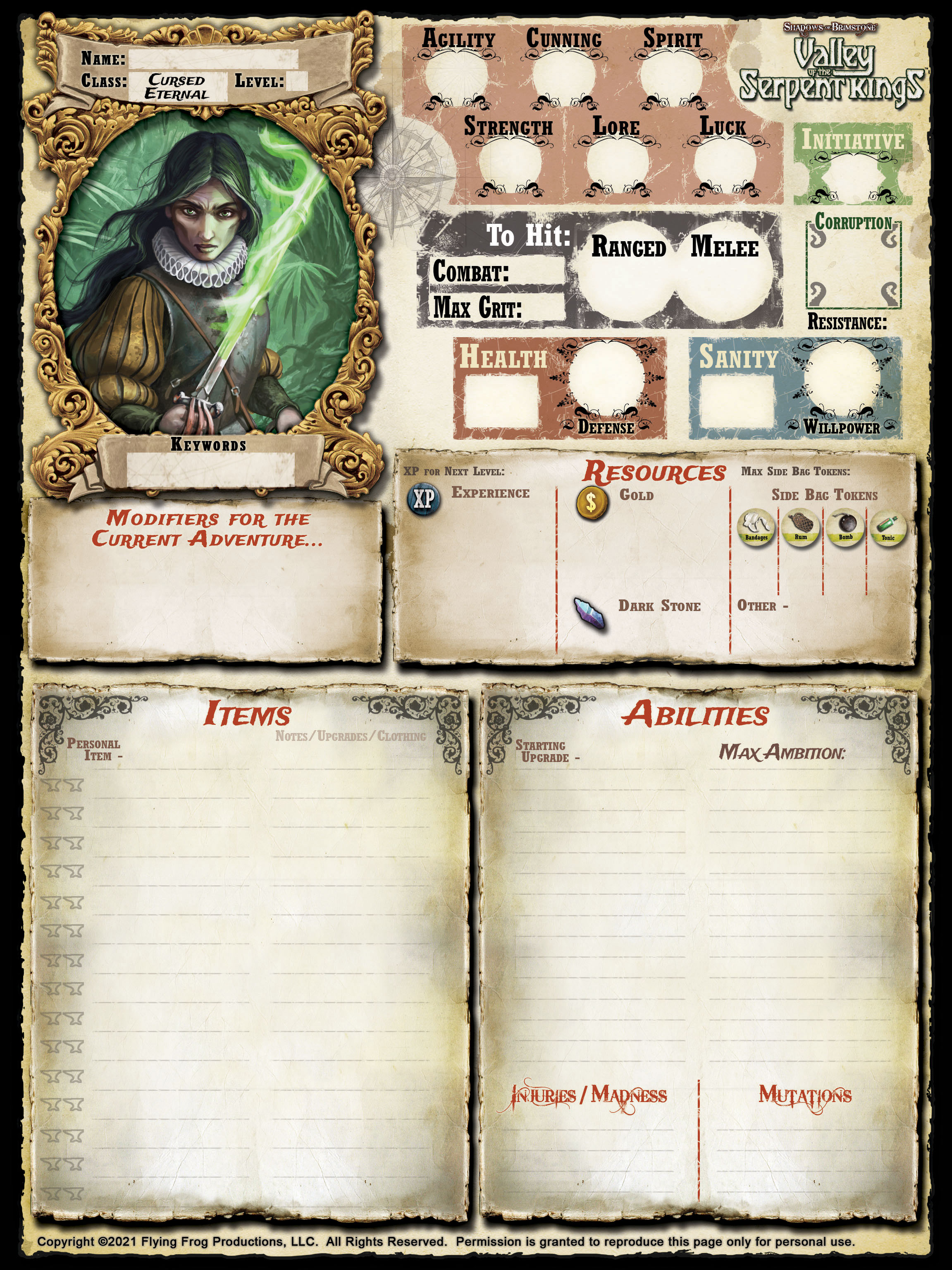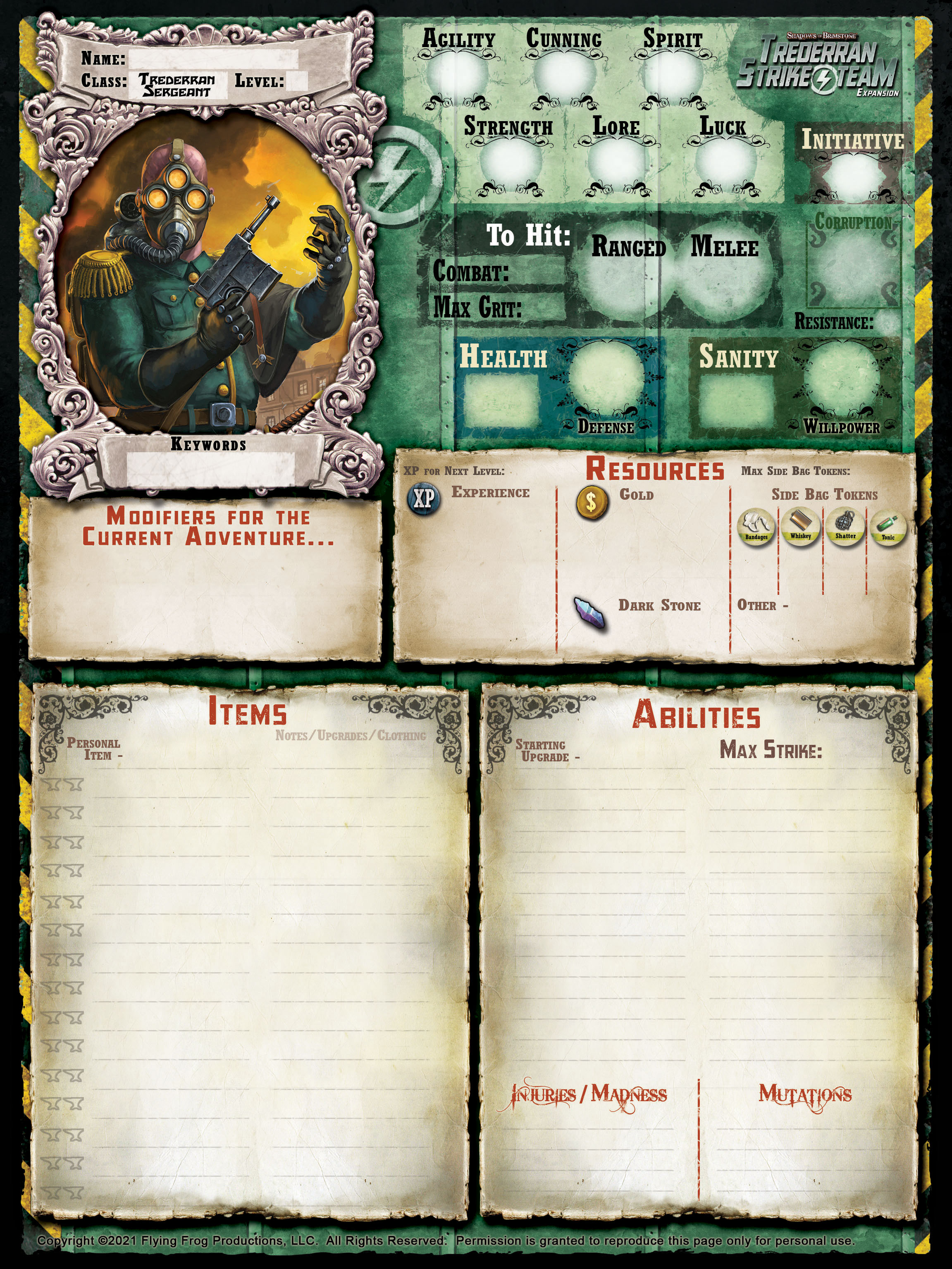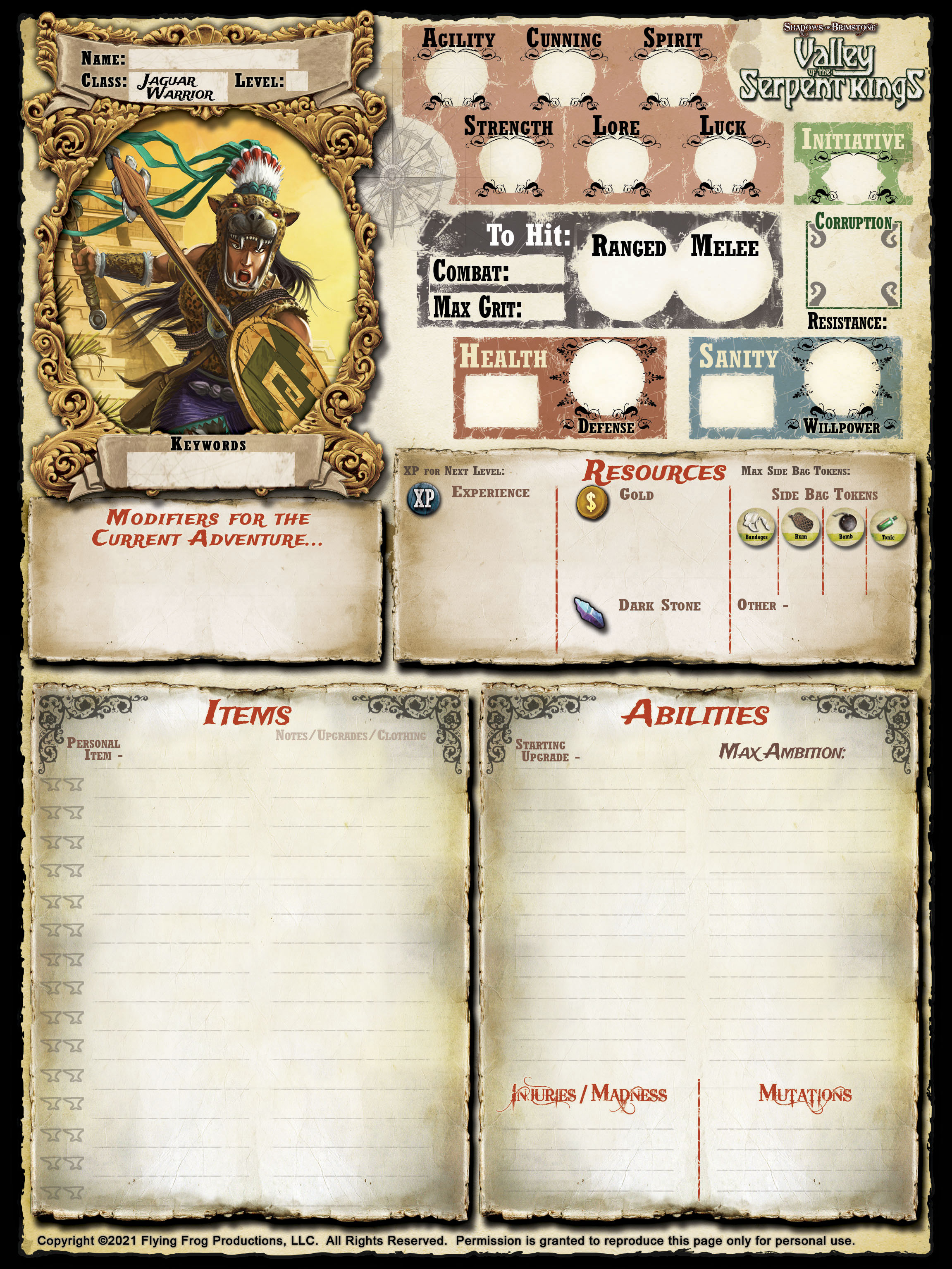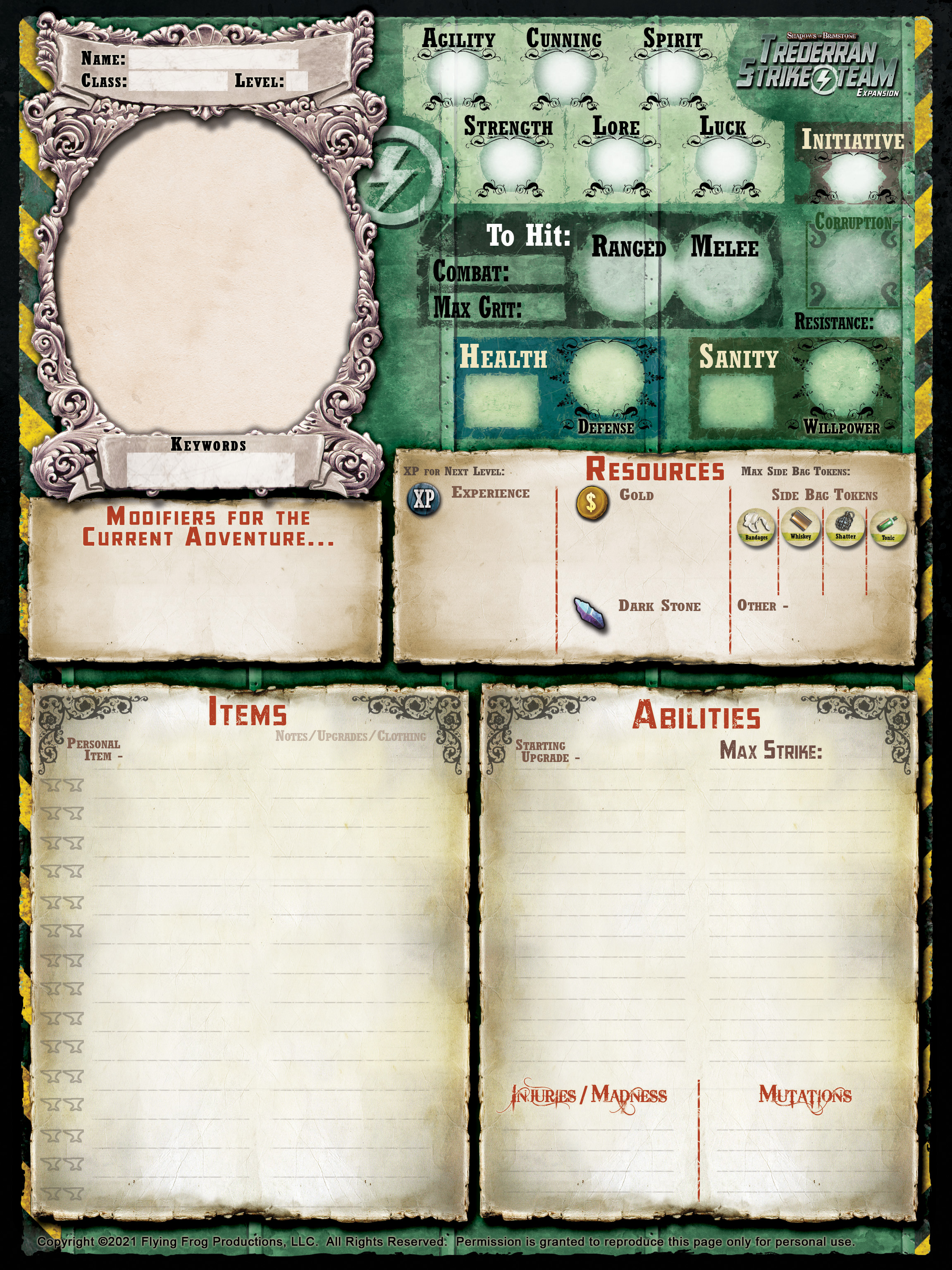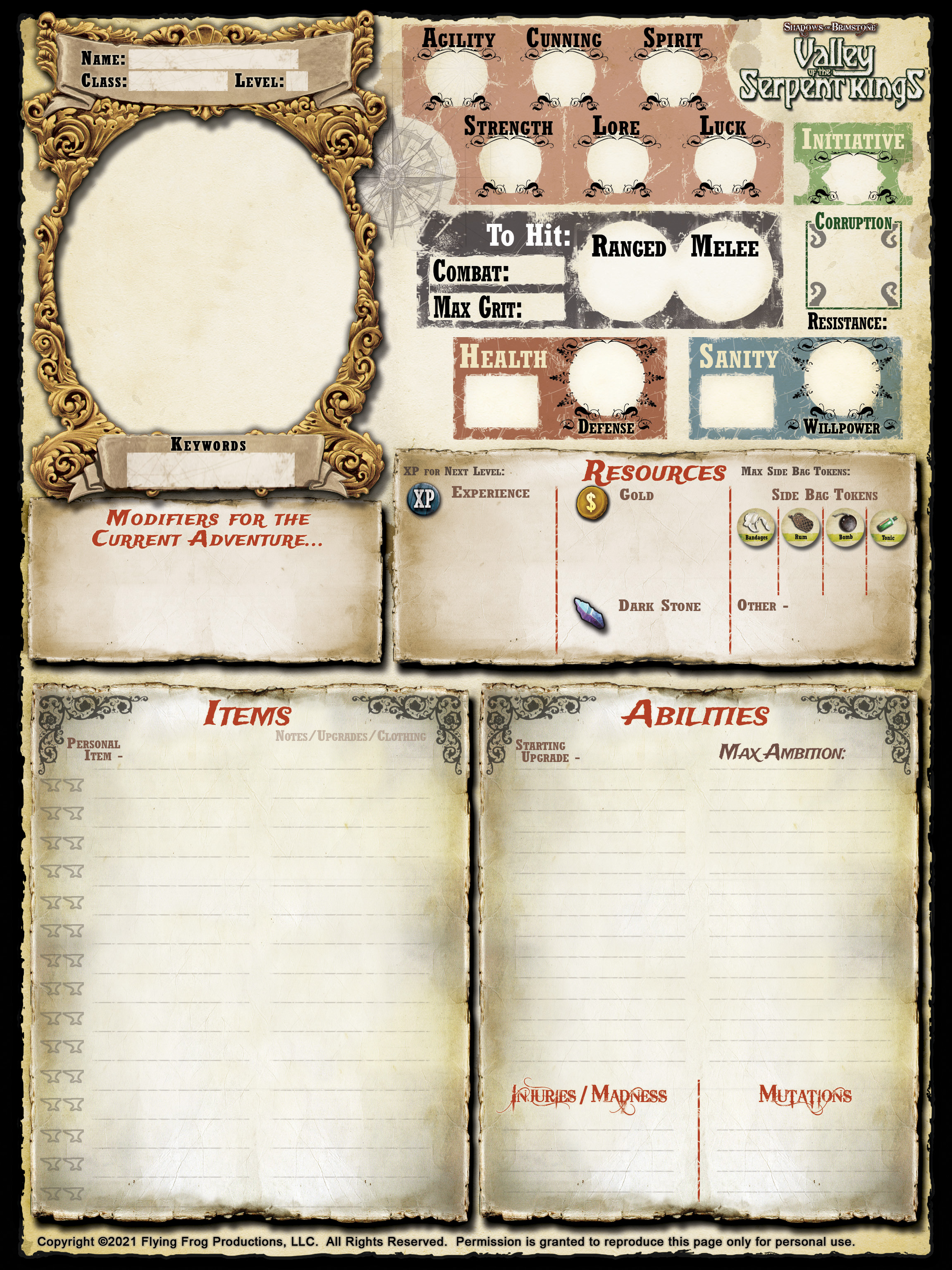In this area, we provide various resources for players, such as Character Sheets, FAQ, and Assembly Guides.