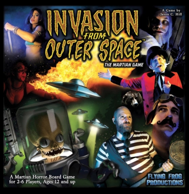 Invasion From Outer Space is a fast-paced game of fiendish Martians, Big Top Heroes, and Sci-Fi Movie Action. Players take on the role of either the Carnival Heroes, using their special talents and working together to fight off the Martian Invasion; or as the invaders themselves, waves of Martian Soldiers and Flying Saucers, blasting Humans with Ray Guns and unleashing their vile alien technologies upon the Earth.