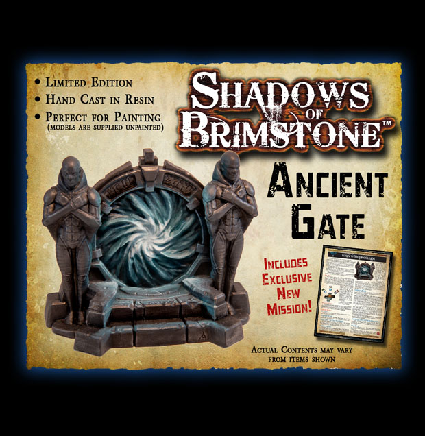 A massive and ancient stone portal, The Ancient Gate was constructed eons ago by the Ancients of the Targa Plateau. These powerful portals could create stable gateways to OtherWorlds across all of time and space. A stunning centerpiece, this set also includes a brand new Mission using the Ancient Gate in your games of Shadows of Brimstone: "When Worlds Collide"