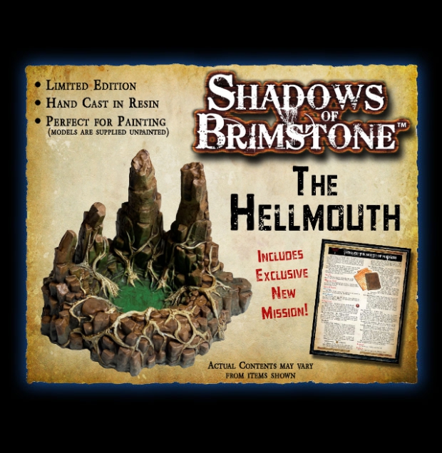 The Hell Mouth Terrain Hazard is a deadly new type of Gate that Heroes may encounter on their adventures. This set features a new Mission that focuses on the Hell Mouth: "Through The Mouth Of Madness". It also includes new rules allowing a Hell Mouth to be randomly encountered on any adventure.